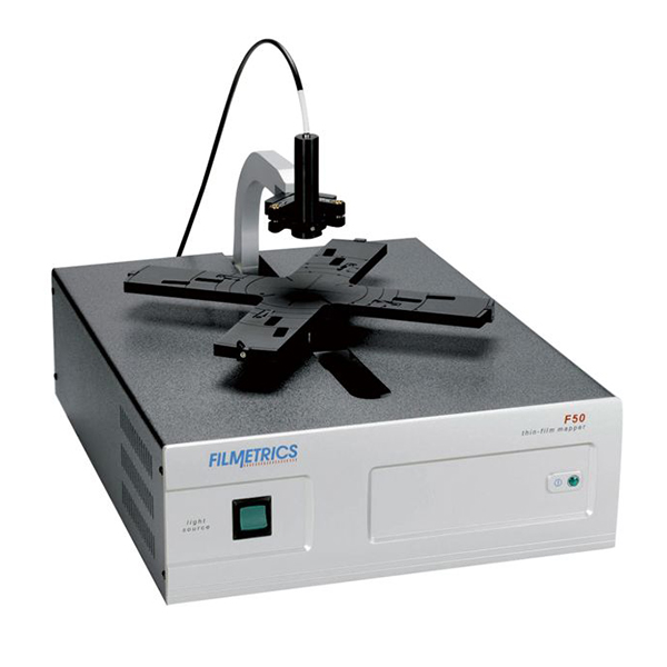 依靠F50先進的光譜測量系統(tǒng),可以很簡單快速地獲得最大直徑450毫米的樣品薄膜的厚度分布圖。采用r0極坐標移動平臺,可以非??焖俚亩ㄎ凰铚y試的點并測試厚度,每秒測試兩點